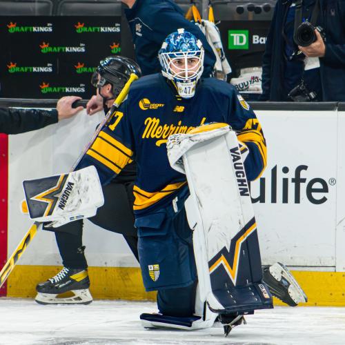 He presents to shooters with a very wide stance and base, which doesn't always work for getting access to his edges. Luckily, if they do shoot low at the five-hole, he is very good at taking away the lower portion of the net. He loves to slide right out at shooters to take away their time and space. -EliteProspects 2023 NHL Draft Guide