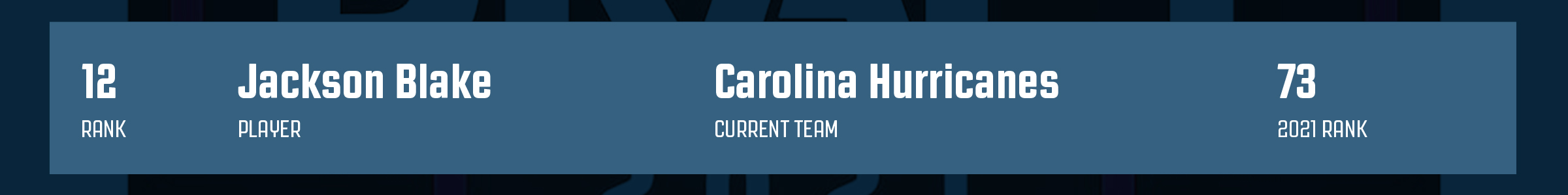 We placed Jackson Blake 73rd in 2021, much higher than consensus, largely because of our Head Crossover Scout Daniel Gee’s input. The Hurricanes drafted him 109th overall. That means they also had Blake significantly higher than this spot.